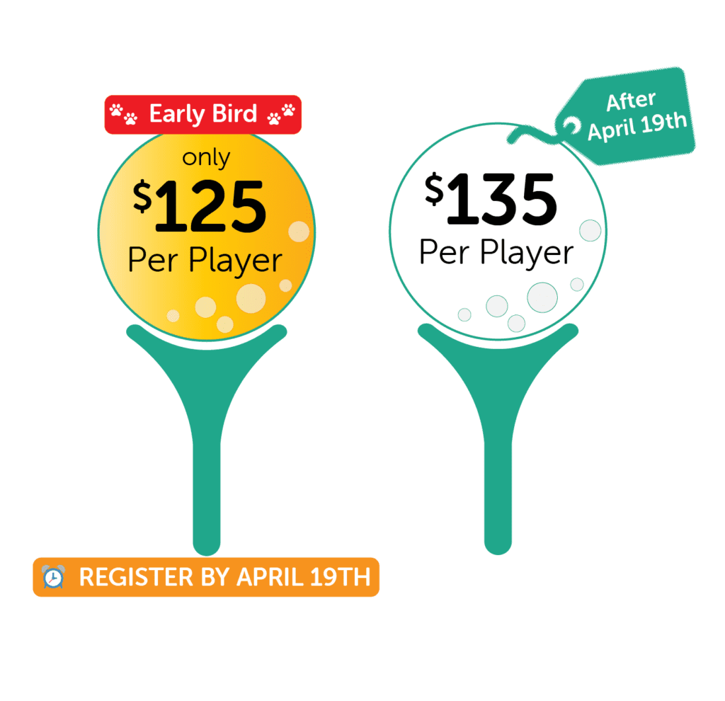 Don’t miss the Awards Ceremony following play! We’ll have food, drinks, plenty of laughs, and in addition to our lively auction and raffles, we will be announcing the winners of our tournament contests – including our three key awards…TOP DOGS, BEST DRESSED and ROUND OF A-PAWS AWARD!